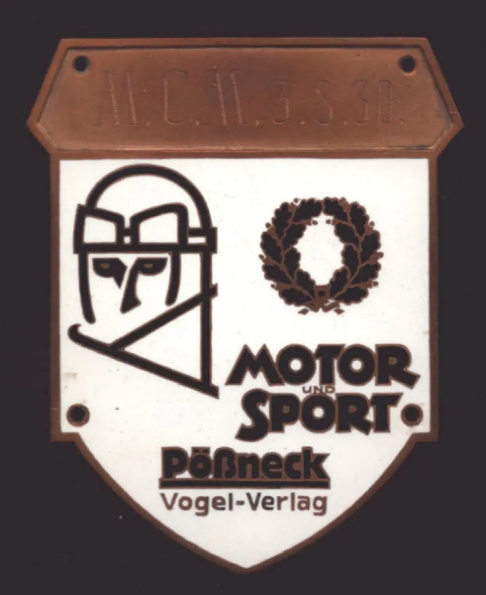 Plakette Motor & Sport Pößneck, Vogel Verlag 3.8.1930