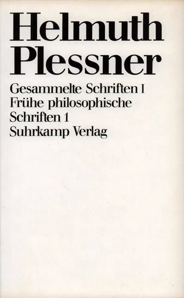 Plessner, Helmuth: Frühe philosophische Schriften, I. (Hrsg. von Günter Dux, Odo Marquard u. Elisabeth Ströker unter Mitwirkung von Richard W. Schmidt, Angelika Wetterer u. Michael-Joachim Zemlin). (1. Aufl.).