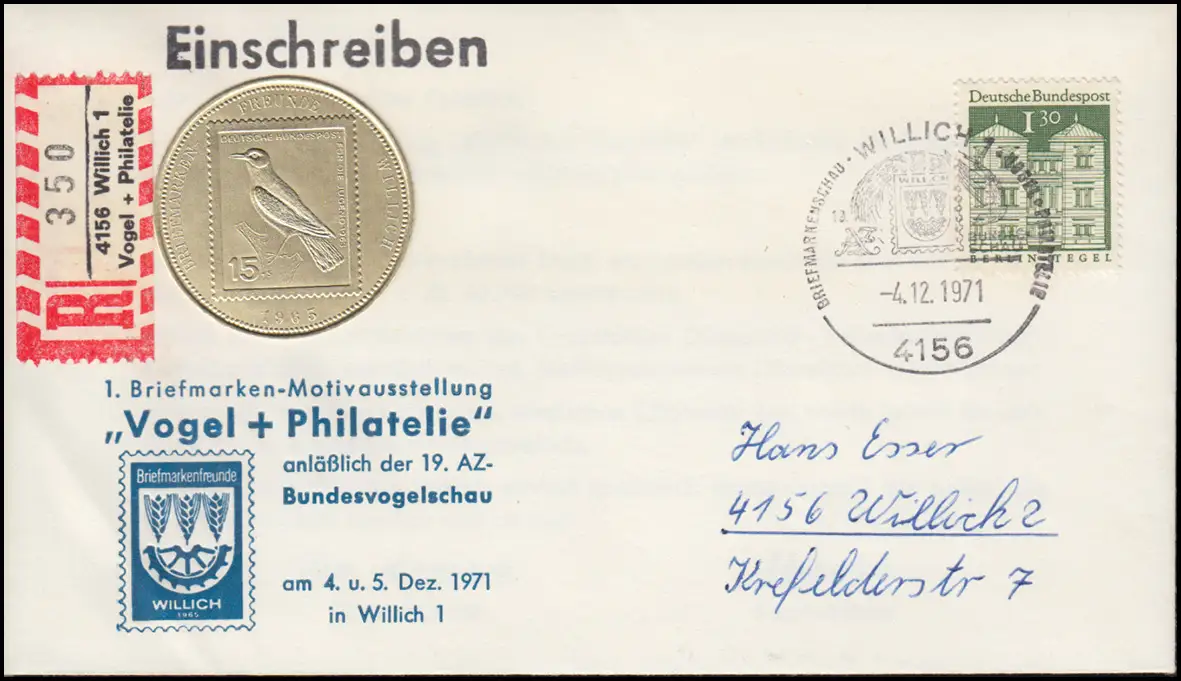 Pointeur spécial R Vogel+Philatelie sur lettre appropriée avec SSt WILLIC 4.12.1971