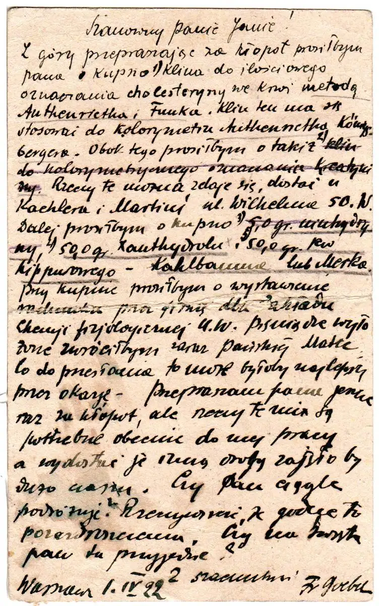 8 Mk. Ganzsache m. Zusatzfr. v. 7 Marken u. blauem Reko-Stempel v. Warschau n. Berlin. Karte m. senkr. mittl. Faltung, 2 Marken Mängel, siehe scans.