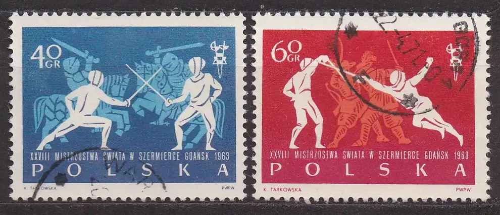 Polen, Mi-Nr. 1406 + 1407 gest., Fecht-Weltmeisterschaften in Danzig