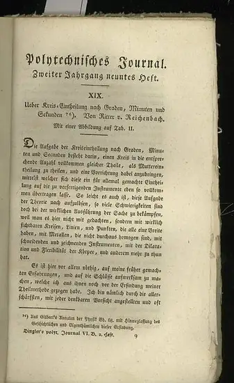 Freie Beschreibung: Gr.-8°. Interimsbroschur mit handschriftl. Bandbez. Die seitl. Ränder nicht beschnitten. Mit einigen Knickstellen. Komplett mit Seiten 129-224, ohne die Tafel. (teilw.aufgeschn., Bogen teilw. lose). Innen mäßiges Exemplar. -- Siehe Kirchner 3940. - Das umfangreichste deutschsprachige polytechnische Journal des beginnenden Industriezeitalters ist ein unschätzbares Archiv des technischen Fortschritts auf industriellen, wirtschaftlichen, arbeitstechnischen und hauswirthschaftlichen Gebieten