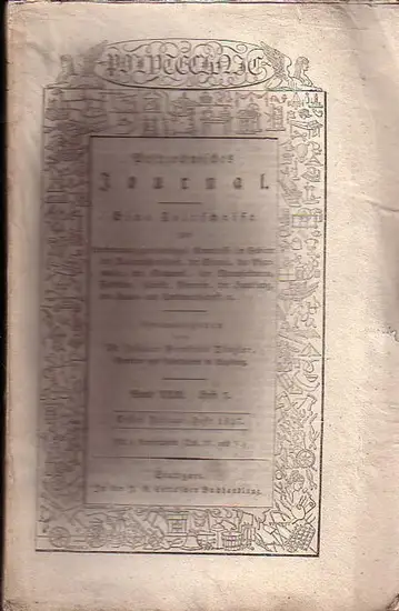 Gr.-8°. Originalbroschur mit Rücken- und Deckeltitel und Vorderdeckelillustration. Der Umschlag wenig angestaubt, die seitl. Ränder nicht beschnitten. Mit einigen Knickstellen. Komplett mit Seiten 201-296. Mit zwei mehrfach gefalteten Kupfertafeln, gutes Exemplar. -- Siehe Kirchner 3940. - Das umfangreichste deutschsprachige polytechnische Journal des beginnenden Industriezeitalters ist ein unschätzbares Archiv des technischen Fortschritts auf industriellen, wirtschaftlichen, arbeitstechnischen und hauswirthschaftlichen Gebieten