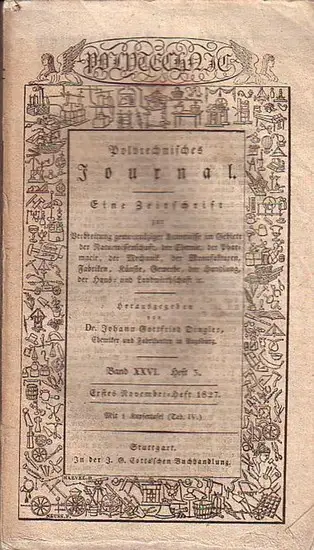 Polytechnisches Journal. Hrsg. v. Johann Gottfried Dingler: Polytechnisches Journal. Band XXVI. Heft 3, Erstes November=Heft 1827. (= 8. Jahrgang, 21. Heft). Eine Zeitschrift zur Verbreitung gemeinnüziger Kenntnisse im Gebiete der Naturwissenschaft, d