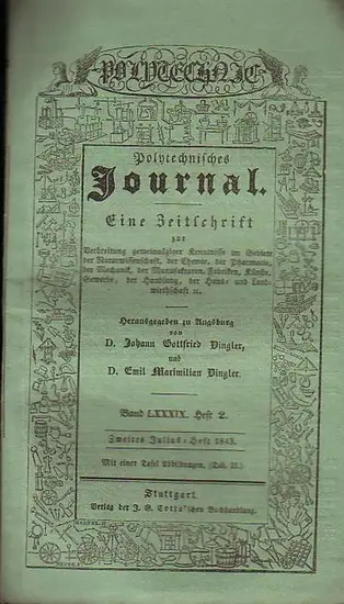 Polytechnisches Journal. Hrsg. v. Johann Gottfried Dingler und Emil Maximilian Dingler: Polytechnisches Journal. Band LXXXIX. Heft 2. Zweites Julius=Heft 1843. (= 24. Jahrgang, 14. Heft). Eine Zeitschrift zur Verbreitung gemeinnüziger Kenntnisse im G