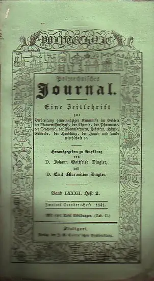 Polytechnisches Journal. Hrsg. v. Johann Gottfried und Emil Maximilian Dingler: Polytechnisches Journal. Band LXXXII. Heft 2, Zweites October-Heft 1841. (= 22. Jahrgang, 20. Heft). Eine Zeitschrift zur Verbreitung gemeinnüziger Kenntnisse im Gebiete der N