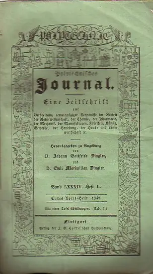 Polytechnisches Journal. Hrsg. v. Johann Gottfried und Emil Maximilian Dingler: Polytechnisches Journal. Band LXXXIV. Heft 1, Erstes April-Heft 1842. (= 23. Jahrgang, 7. Heft). Eine Zeitschrift zur Verbreitung gemeinnüziger Kenntnisse im Gebiete der Natur