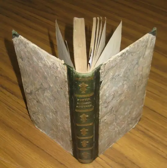 Freie Beschreibung: 8°. 17,3 x 10,4 cm. Grüner Original-Halblederband mit reichhaltigem Rückenschmuck und Rückentitel in Goldprägung und marmoriertem Bezugpapier. 3 Blatt, 296 Seiten (davon 20 Seiten römisch 'XX' paginiert). An den Kanten geringfügig beschabt. Eintragungen in alter Tinte im Innendeckel. Der Innenteil gut erhalten, ab Seite 260 ist der rechte Randbereich leicht braunfleckig (siehe auch weitere Abbildungen). Insgesamt ganz gut erhalten. / 8 °. 17.3 x 10.4 cm. Green original half leather volume with rich back decoration and back title in gold embossing and marbled cover paper. 3 sheets, 296 pages (of which 20 pages are paginated in Roman 'XX'). Slightly scraped along the edges. Entries in old ink inside the frontcover. The inner part is in good condition, from page 260 the right edge area is slightly brown stained (see also other images). At all in good condition. / 8 °. 17,3 x 10,4 cm. Grönt original halvläderarmband med rik ryggdekoration och baksida i guldprägling och marmorerat omslagspapper. Bidrag med gammalt bläck på insidan. 3 ark, 296 sidor (varav 20 sidor är paginerade i romerska 'XX'). Något skrapat längs kanterna. Den inre delen är i gott skick, från sida 260 är den högra kantytan något brunfärgad (se även andra bilder). Överlag i mycket gott skick