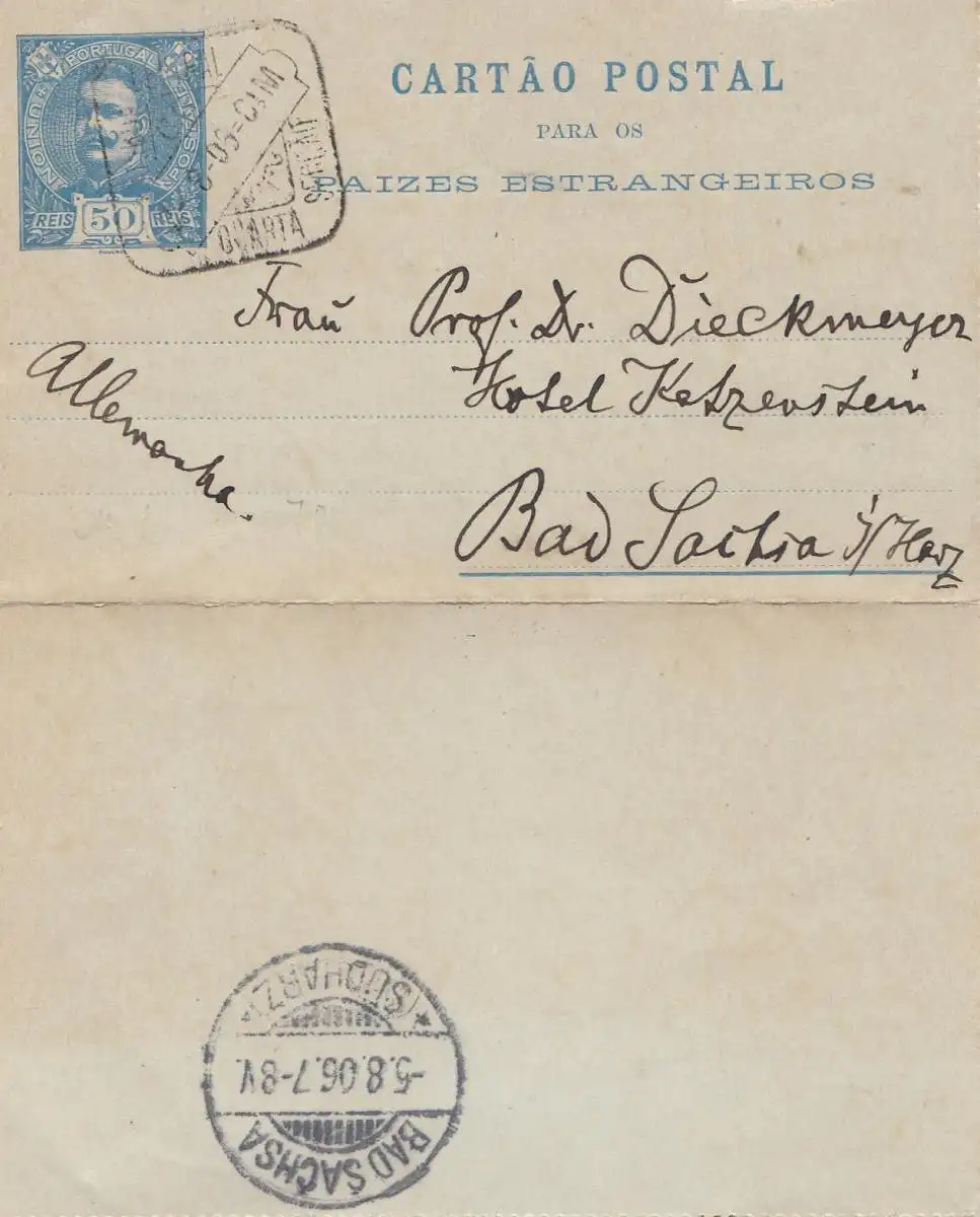 Portugal: 1906: petite lettre de carte après Bad Sachsa