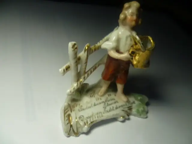 Porzellanminiatur Mädchen bringt 1 Bierkrug in Landschaft wohl Schweiz oder Erzgebirge um 1880-1900 M : 65 mm X 55 mm