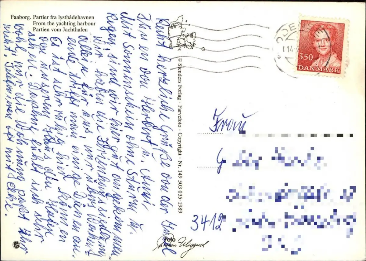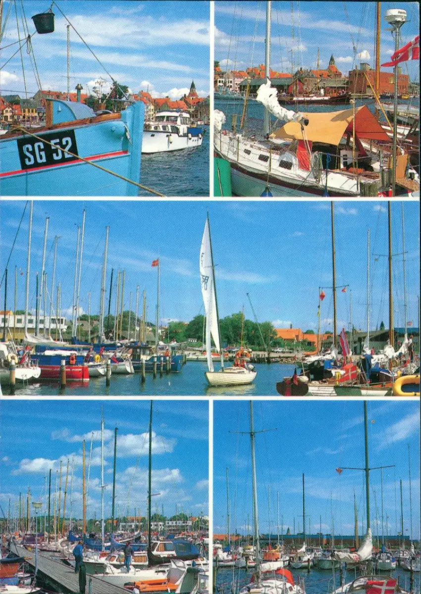 Postcard Faaborg Mehrbildkarte Ortsansicht Partie am Jacht-Hafen 1990