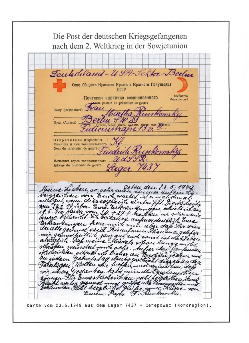 Poste de prisonniers de guerre Camp 7437 Tcherepowez URSS Berlin (secteur des États-Unis) 23.5.1949