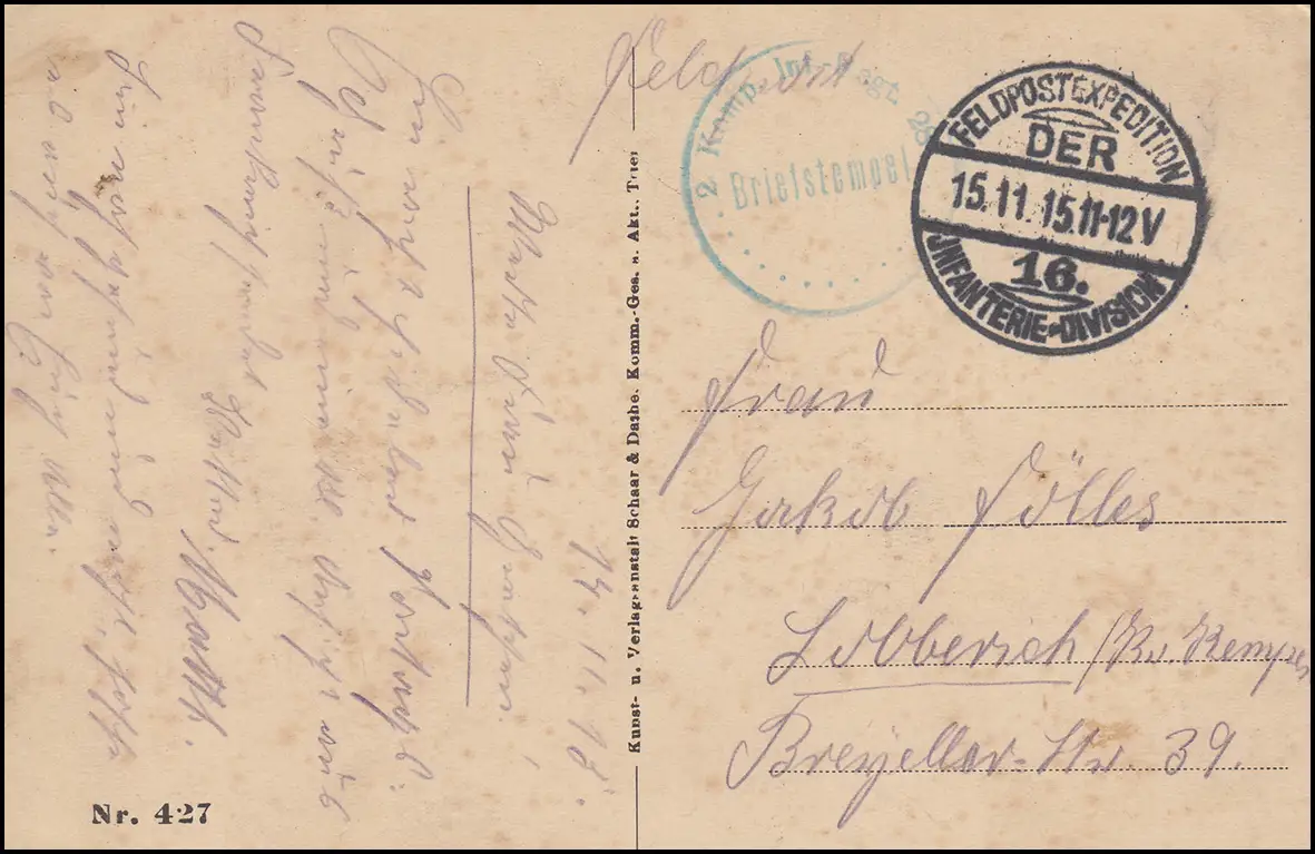 Poste de terrain 2.Commandant-régiment d'infanterie 28, 15.11.15 à AK Lafaux, selon Lobberich