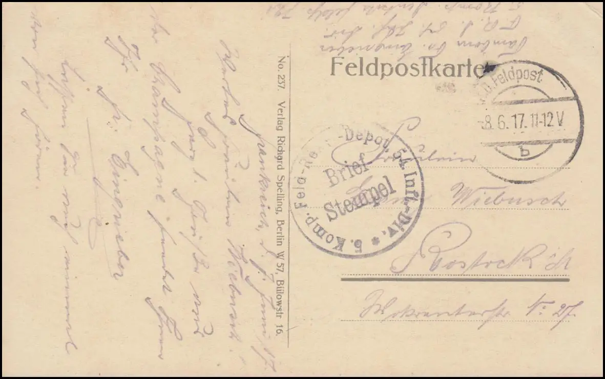 Poste de terrain B.S. 5. Compar. Depot de réserve de champ 54 Div Inf. 8.6.1917 sur AK Monthois
