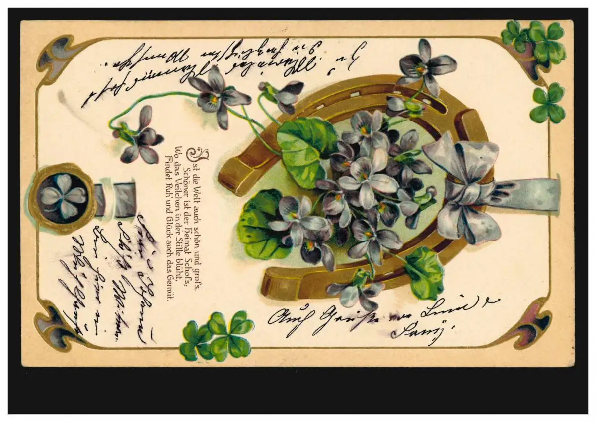 Poste ferroviaire Konstanz-OFFENBURG 16.7.1908 sur carte de dessin fer à cheval avec violette