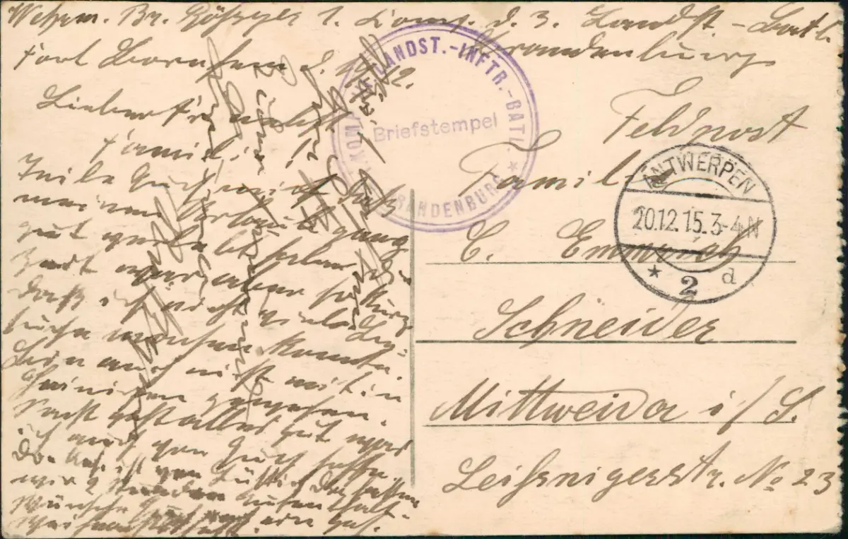 Postkaart Lüttich Luik Lîdje Ancienne maison, quai Goffe 1915 Feldpoststempel