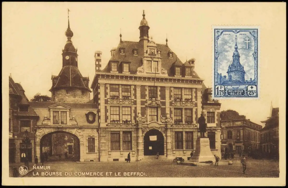 Postkaart Namur Namen La Bourse du Commerce et le Beffroi 1927