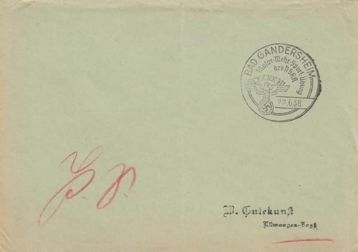 Affaire postale Kuvert 1937: Bad Gandersheim: Motor Wehr Sport Exercice NSKK