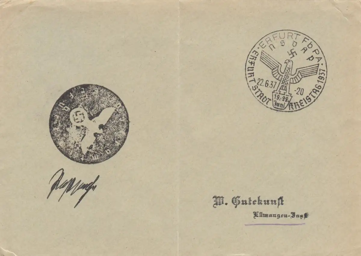 Affaire postale Kuvert 1937: Erfurt FbPA: Jour de l'arrondissement de la ville NSDAP