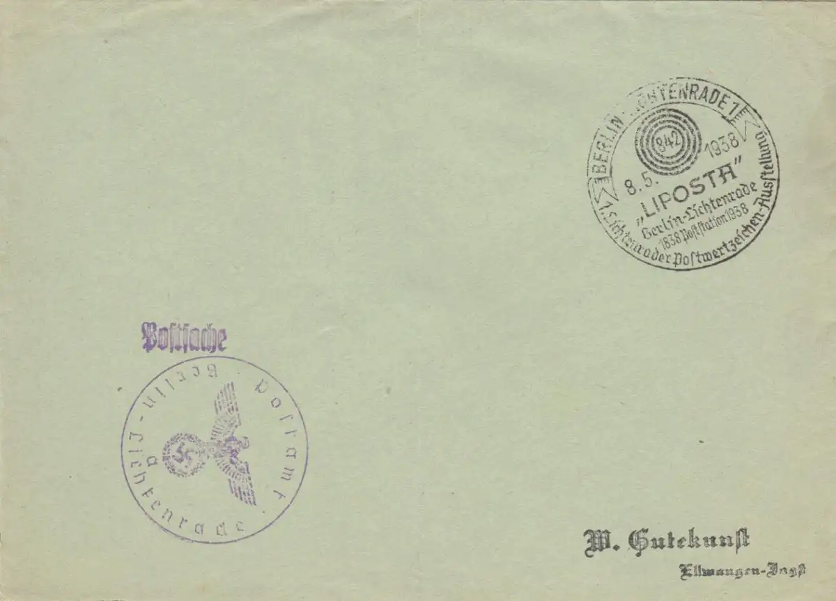 Chose postale Kuvert 1938: Berlin Lichtenrade Postmarkt Summer