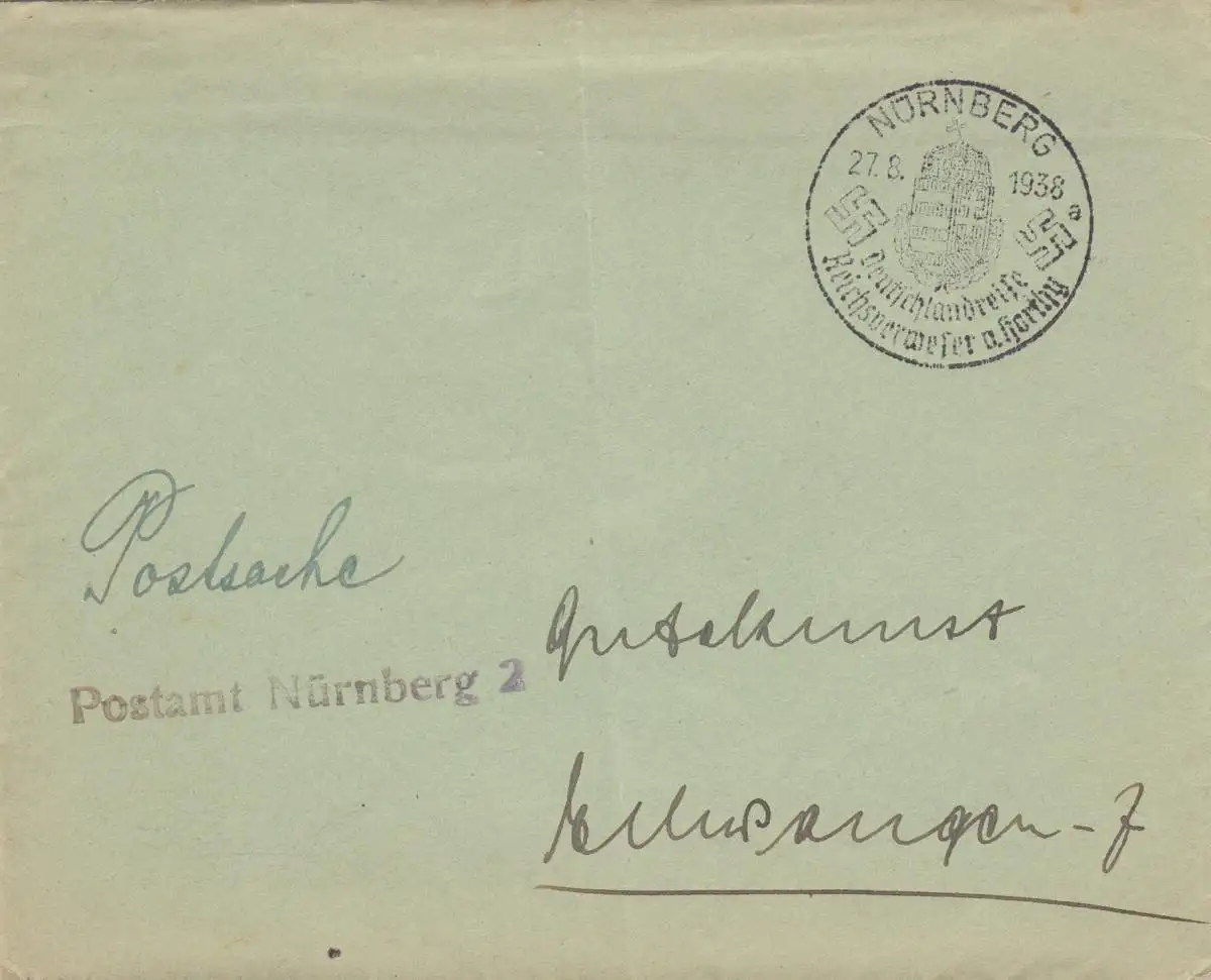 Affaire postale Kuvert 1938: Nuremberg voyage Allemagne Reichsverweser c. Horthy