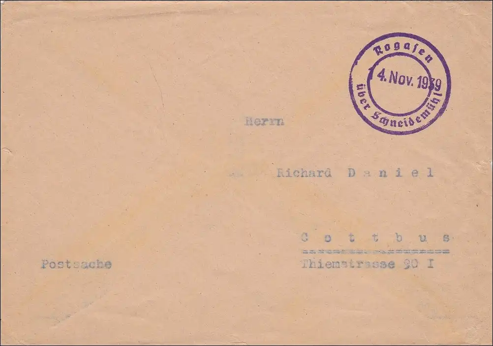 Cadeaux postaux: Rogasen sur Schneidermühl 14.11.1939