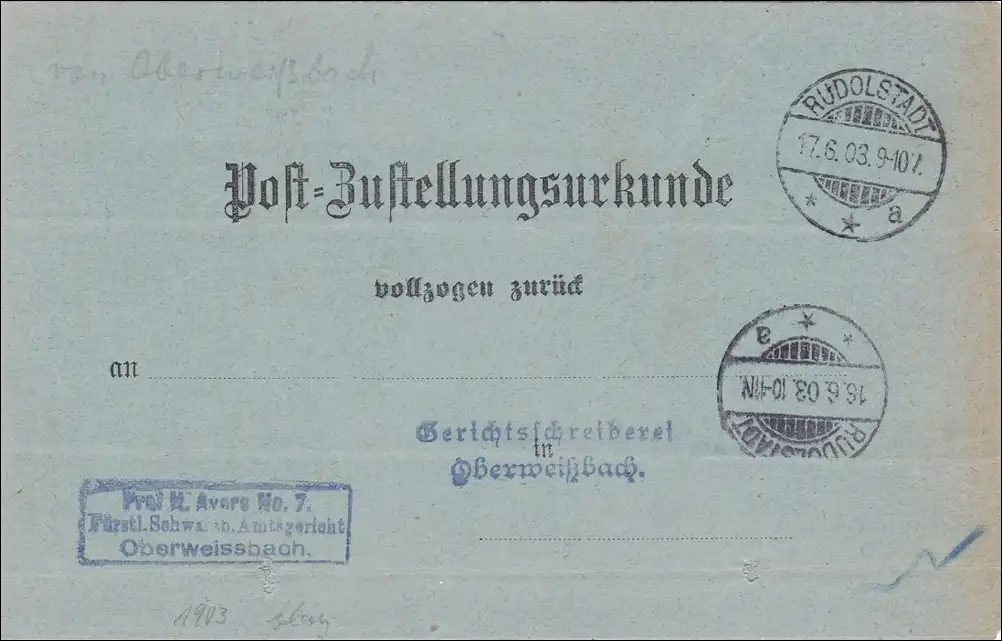 Post-addote Rudolstadt 1903 après Oberweissbach