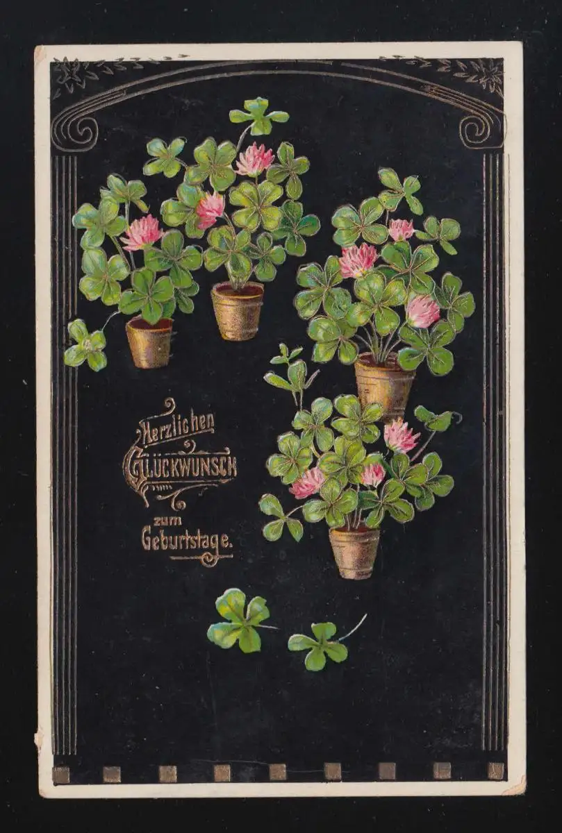 Pots Trèfle de bonheur motif noir, Félicitations, Lichtenberg 9.11.1911