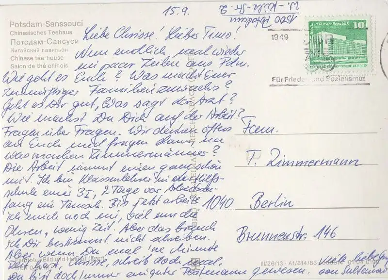 Postleitzahl:14471 (neu) / O 1500 (alt)