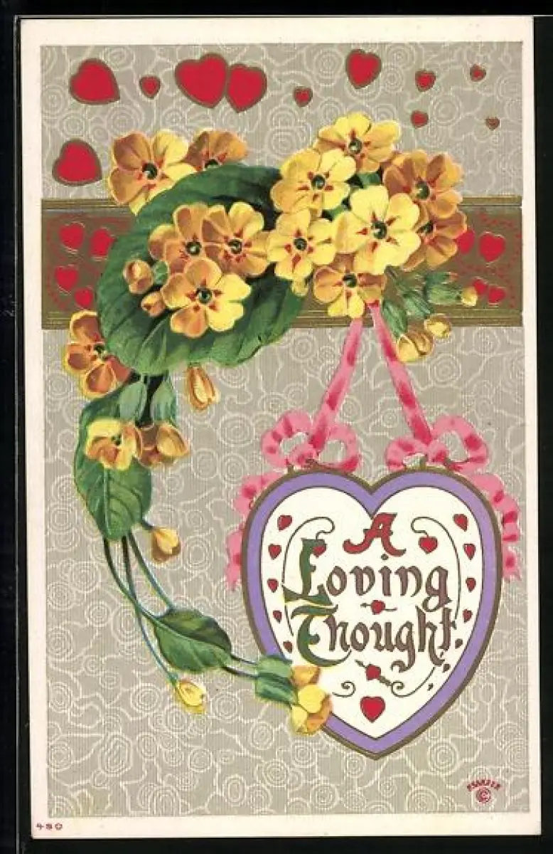 Präge-AK Gelbe Blümen mit einem Herzanhänger, A Loving Thought