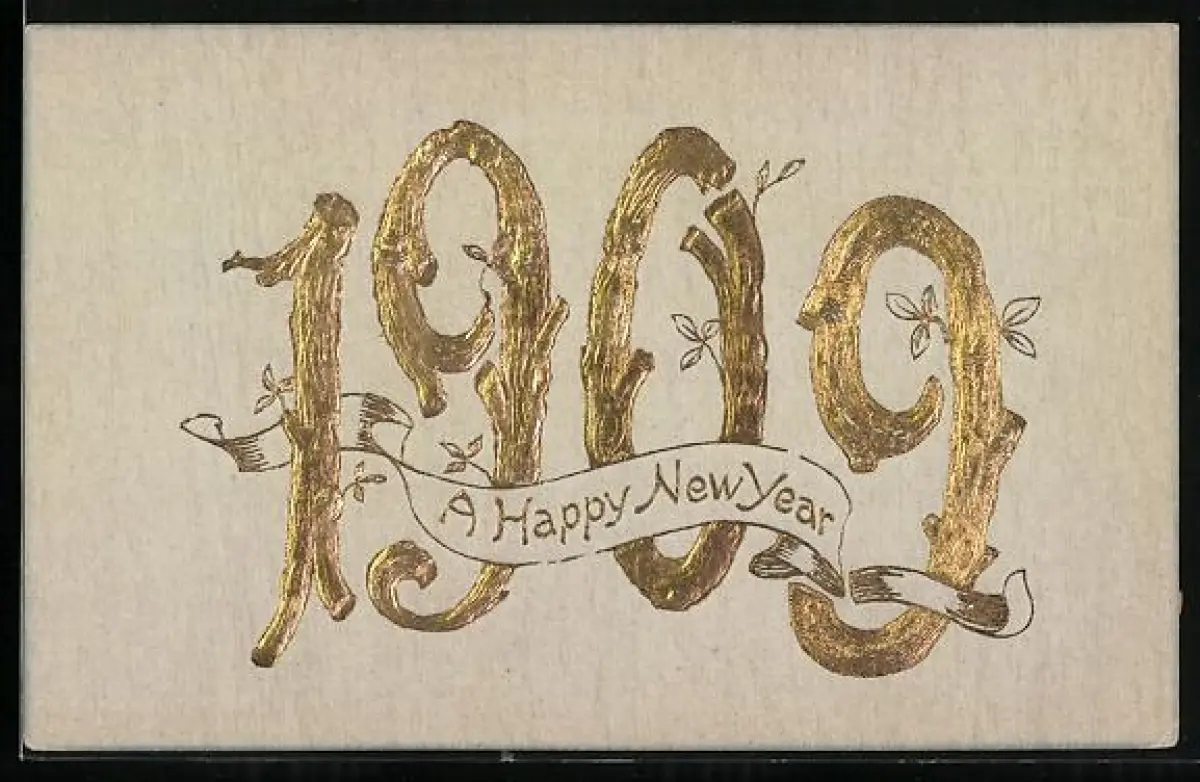 Präge-AK Goldenes Jahreszahl 1909, A Happy New Year