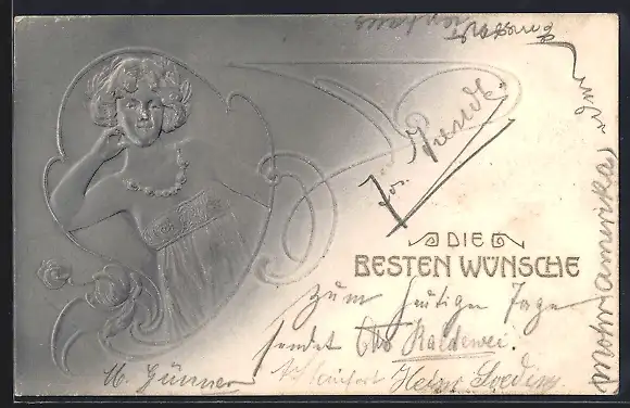 Präge-AK Junge Frau mit einem Lorbeerkranz auf dem Kopf, Jugendstil