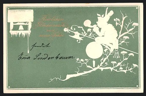 Präge-AK Nachtwächter auf einem Baum, Vogelhäuschen, Neujahrsgruss