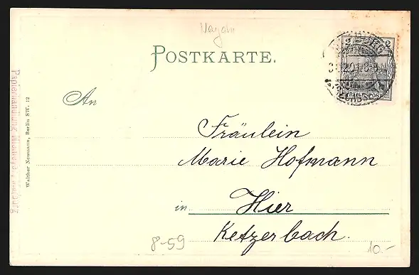 alte Ansichtskarte, gelaufen 1901, guter Zustand