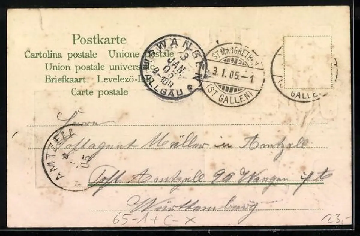 gelaufen 1905, Briefmarke entfernt, guter Zustand