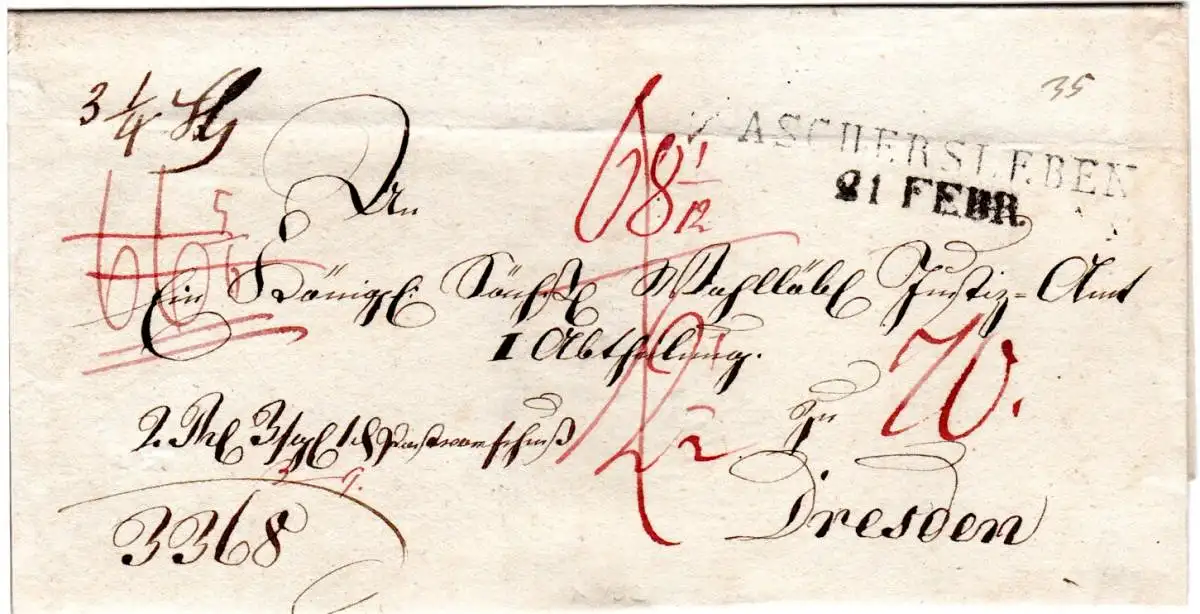 Preusen, L2 Aschersleben auf Postvorschuss Paketbrief n. Sachsen