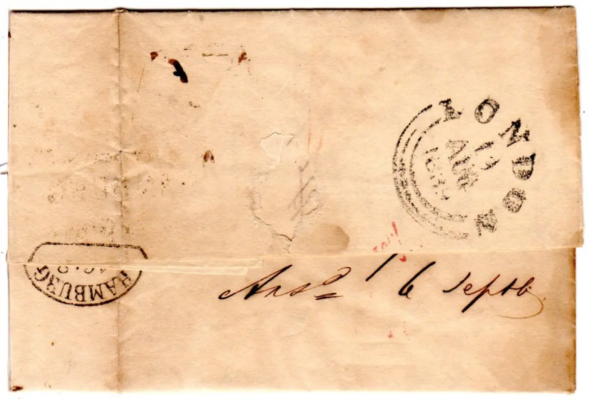 Preussen 1839, K2 Danzig auf Franko/Porto Brief via Hamburg n. London GB