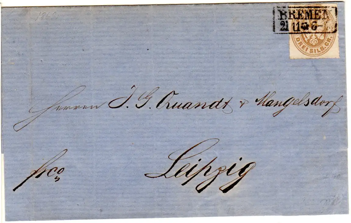Preussen 1862, 3 SGr. auf Brief v. Bremen n. Sachsen