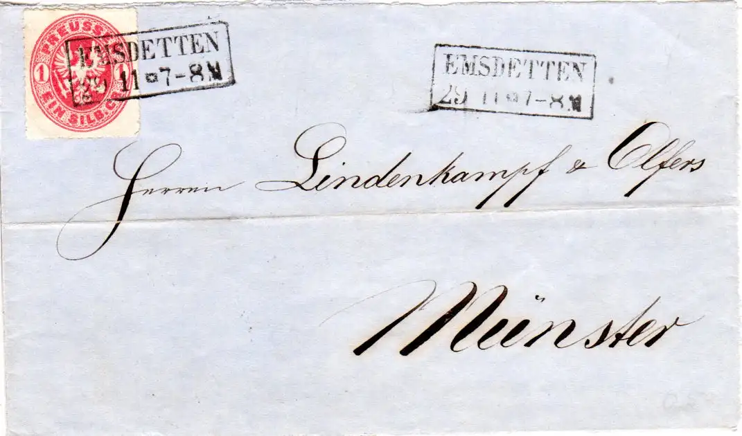 Preussen, Westfalen-R2 Emsdetten auf Brief-Vorderseite m. 1 SGr.