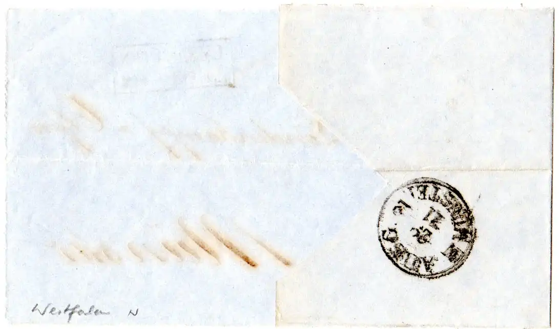 Rücks. 3 fehlende Briefklappen (siehe scan) u. Ank. Stpl. Ausg. N2 Münster.