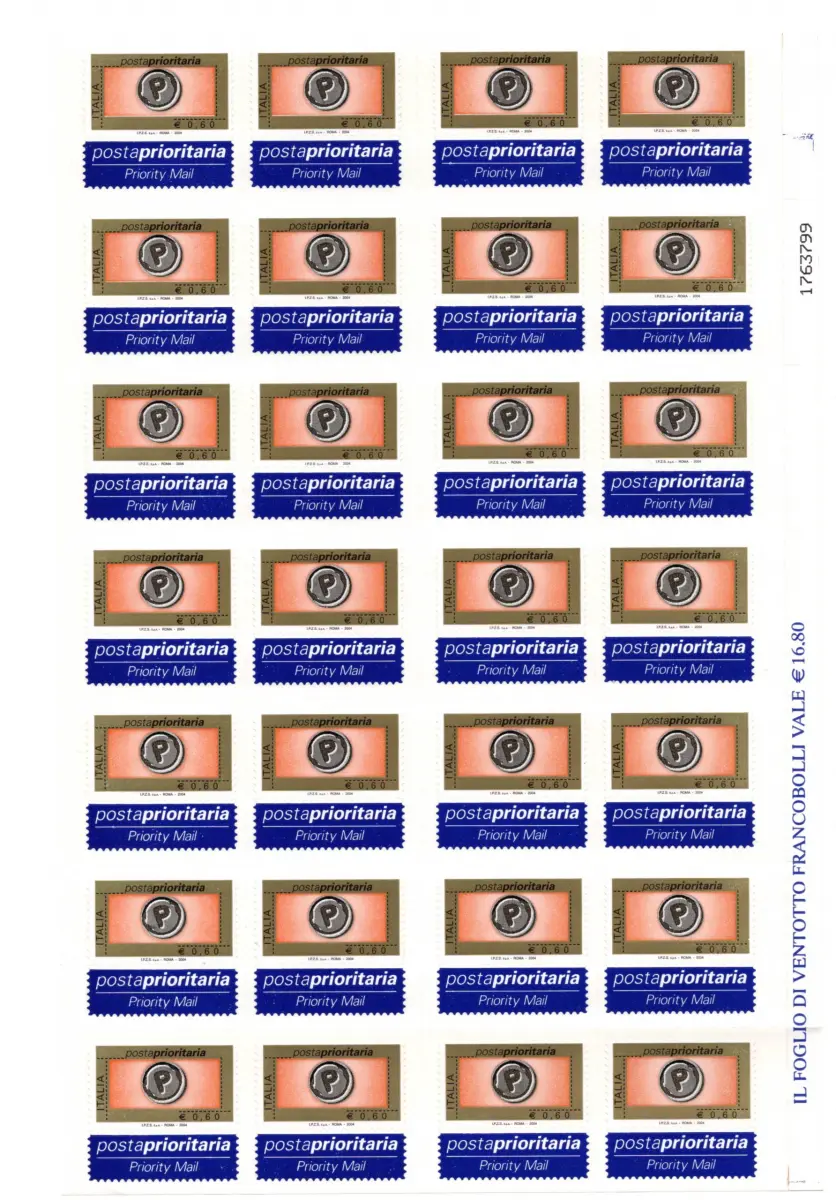 Priority Post Euro 0,60 2004 - I. Typ 28 Exemplare und 28 Vollgummi-Etiketten - Priority Post Euro 0,60 I. Geben Sie den kompletten Bogen mit 28 Exemplaren und 28 Etiketten ein - Neu - Leichte horizontale Falte unten - Code 591/WEB
