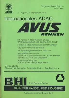 Programm AVUS ADAC 31.8./1.9.1974
