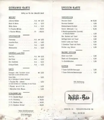 Programm / Speise- und Getränkekarte Rififi-Bar 1962-1963