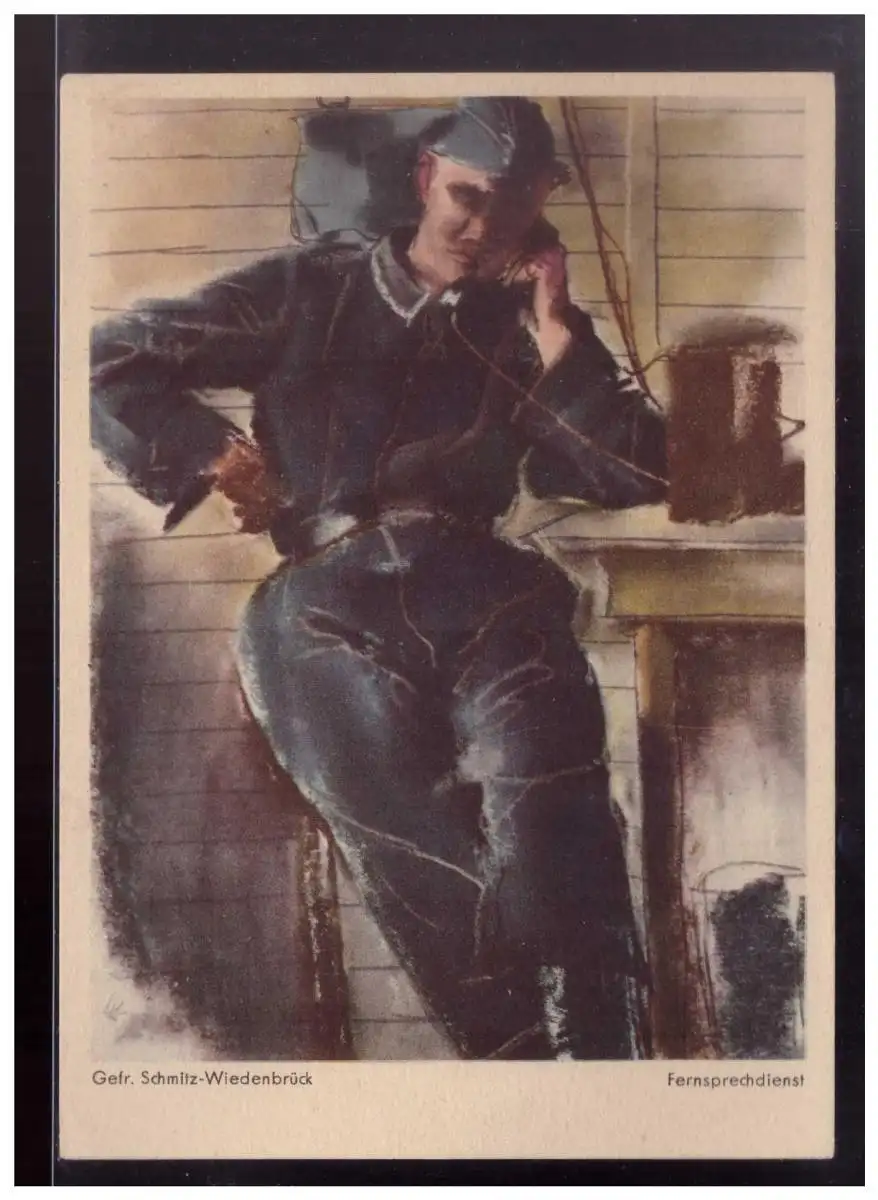 Titel: Dt- Reich (023061) Propaganda Feldpostkarte,Ausstellung Kunst an der Front, des Luftgaukommandos VI, Fernsprechdienst