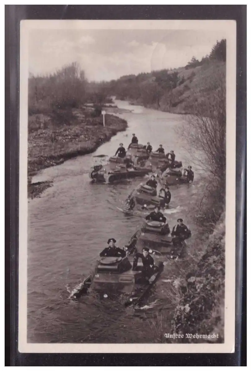[Propagandapostkarte] Dt- Reich (023224) Propaganda AK Unsere Wehrmacht, Panzer beim Überquerung eines Flusses, gelaufen.