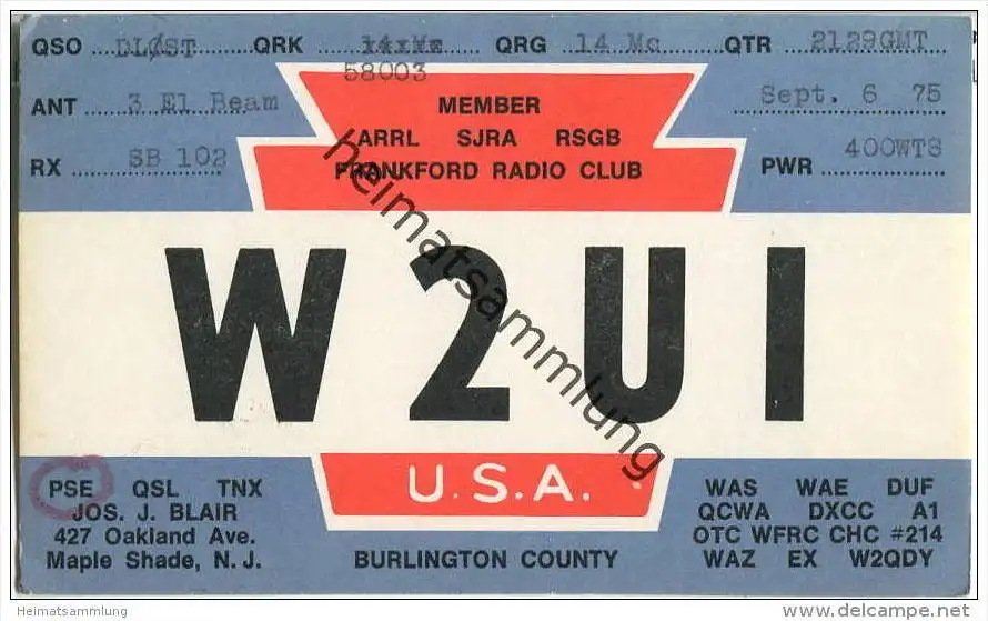 QSL - Funkkarte - W2UI - USA - Maple Shade New Jersey - 1975