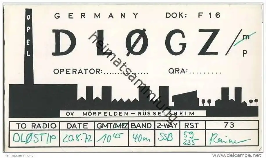 QSL - QTH - Funkkarte - DL0GZ - Mörfelden - 1972