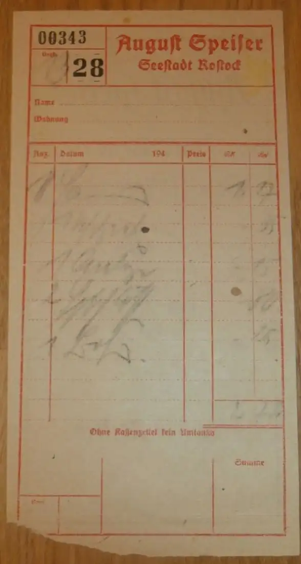 Qualitätsware - August Speiser in Rostock , 1928 , alte Rechnung , Mecklenburg