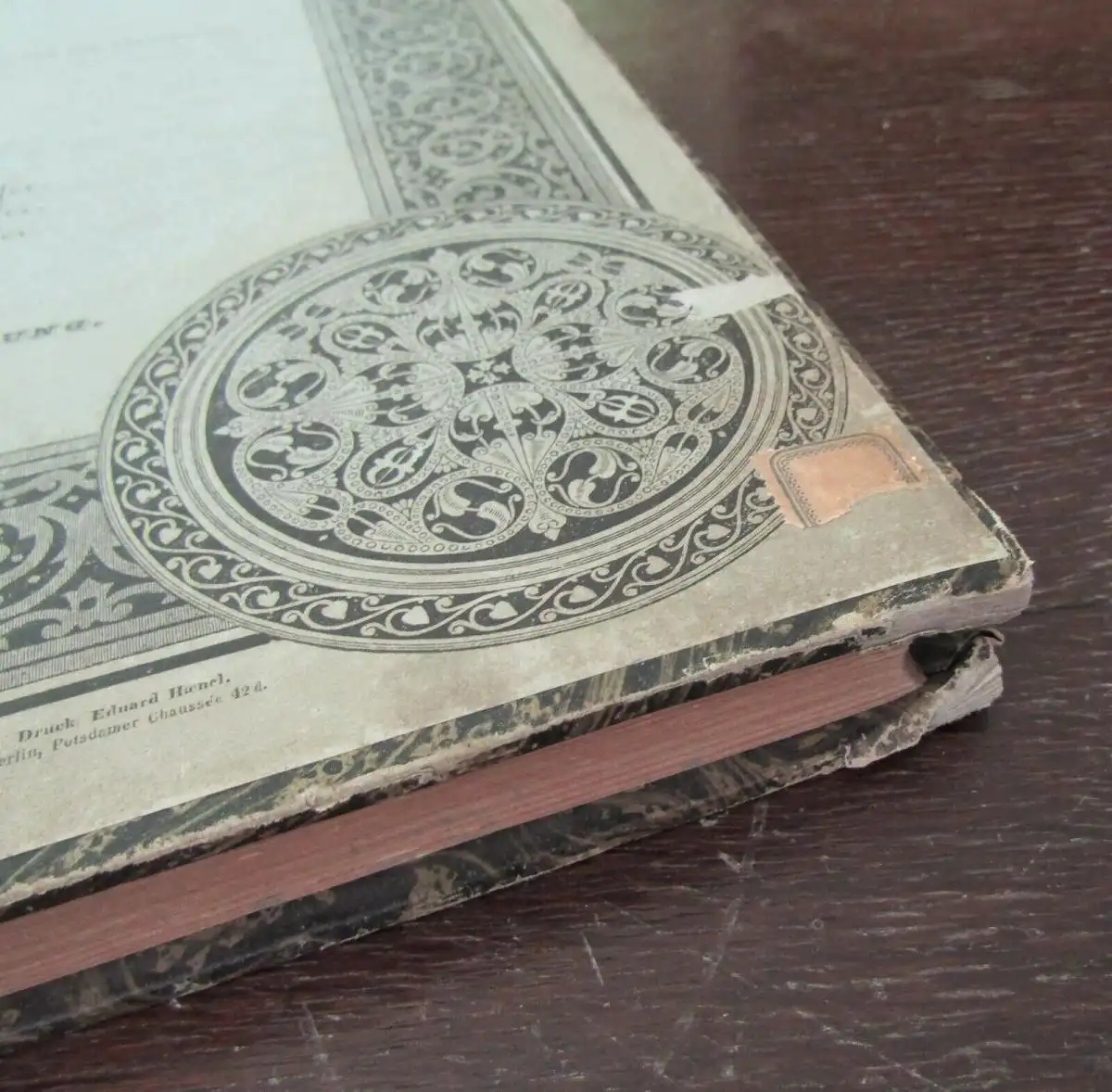 Einband fleckig, bestoßen und gebräunt. Rücken an der unteren Falz 28 cm eingerissen, oberhalb von 17 cm auf der hinteren Falz. Gutes Exemplar. Bilder sind Bestandteil der Zustandsbeschreibung. Zustand wurde bereits im Preis berücksichtigt.