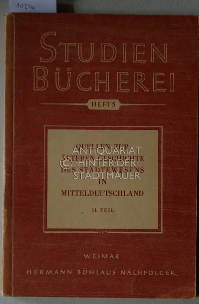 Quellen zur älteren Geschichte des Städtewesens in Mitteldeutschland. II. Teil. [= Quellen zur mittel-deutschen Landes- und Volksgeschichte 1. Heft; Studienbücherei Heft 5] Hrsg. vom Institut für Deutsche Landes- und Volksgeschichte an der Universität Lei
